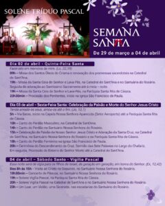 A programação tradicional e litúrgica começou na última Quarta-feira de Cinzas e segue até o dia 4 de abril (Domingo de Páscoa). As atividades religiosas são realizadas pela Catedral de Sant’Ana, pelo Santuário do Rosário, pela Venerável Irmandade do Senhor Bom Jesus dos Passos e pela Organização Vilaboense de Artes e Tradições (Ovat).