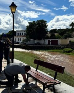 Com o intuito de valorizar o espaço urbano e incentivar a convivência social, a Prefeitura de Goiás, por meio da Secretaria Municipal de Infraestrutura e Serviços Públicos, instalou, nesta quarta-feira (21), uma série de bancos de madeira na Avenida Beira Rio.