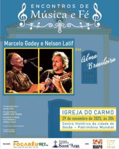 A próxima edição da série Encontros de Música e Fé acontece neste sábado (29), às 20h, na belíssima Igreja do Carmo. O show, intitulado “Alma Brasileira”, reúne dois músicos de alto quilate: o cantor e compositor Marcelo Godoy e o violonista e cavaquinista Nelson Latif.