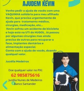 Diante dessa situação, Jucélia está organizando uma vaquinha para ajudar a família de Kevin. Os interessados em contribuir devem realizar os depósitos em seu Pix: (62) 98587-5616. “Eu prestarei contas de todo valor recebido e do que foi gasto”, garante Jucélia.