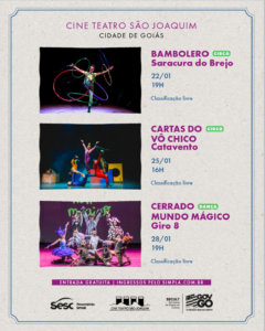 Para a secretária de Estado da Cultura, Yara Nunes, a soma de esforços entre o Governo de Goiás, a Secult e o Sesc fortalece a gestão e amplia a programação do Cine Teatro São Joaquim. “Essa união possibilita oferecer à população uma agenda cultural diversa, gratuita e de qualidade, ao mesmo tempo em que valoriza um dos mais importantes patrimônios culturais da cidade de Goiás e estimula a produção artística local”, destaca a titular da Cultura.