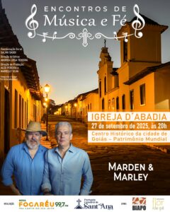 Música, arte, história e cultura regional estarão reunidos mais uma vez na edição de setembro do projeto Encontros de Música e Fé. Desta vez, os convidados são os irmãos Marden e Marley, que retornam juntos aos palcos após seguirem projetos individuais. A apresentação acontecerá neste sábado (27), às 20h, na Igreja D’Abadia.