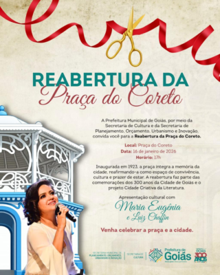 Fechada desde setembro do ano passado para obras de revitalização, a Praça do Coreto será entregue novamente a moradores e visitantes nesta sexta-feira (16), a partir das 17h. A inauguração deste importante cartão-postal da cidade de Goiás contará com show da cantora goiana Maria Eugênia e do violonista Luiz Chaffin.