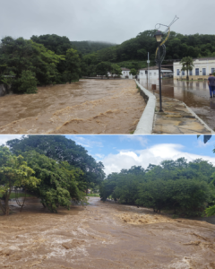 O rio saiu da caixa próximo ao laboratório do Hospital São Pedro D’Alcântara e no Parque da Carioca. Já nas imediações da Prefeitura, as ruas ficaram alagadas com o transbordamento do Córrego Manoel Gomes.